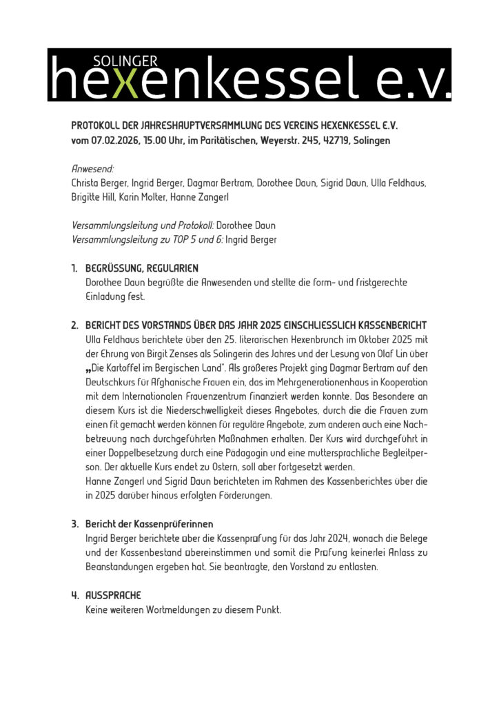 Protokoll der JHV 2026